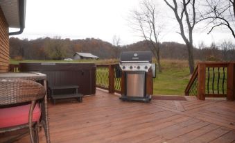 Unwind with your morning coffee on the front porch looking out into a large field, or enjoy the expansive entertaining area with grill, seating, and 7-person hot tub after a day of adventuring. Later that evening, build a fire and make s’mores at the fire pit.