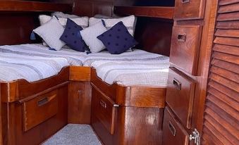 This Blue Water Yacht spent most of its life sailing between California and Alaska, although she's been around the world twice. Her classic teak woodwork, comfortable layout, and modern amenities make for the perfect stationary getaway on the water.