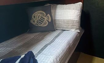 The three well-appointed cabins, two bathrooms, a living area, and a modern galley, provide a comfortable stay, to be sure....but who's staying inside when you can spend time on the large dock - relaxing with a good book, grilling out, swimming with the dolphins, paddleboarding, kayaking, or even fishing one of the best spots in town!