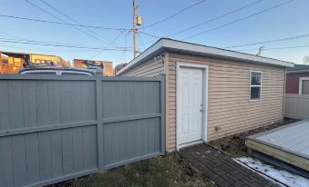 Due to the cold weather in Forest Park, we are unable to make significant upgrades to the outdoor space until spring, as we finalized the purchase of the house at the end of November. However, guests can still enjoy the outdoors from the back porch deck, offering a peaceful spot to soak in the sights and sounds of Forest Park. The fenced-in backyard is an attractive feature, providing a safe and relaxing area for both play and leisure. We’ve also added a lower level of deck with plans to install a gazebo when the weather permits, enhancing the outdoor experience in the warmer months.