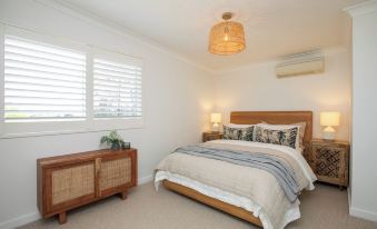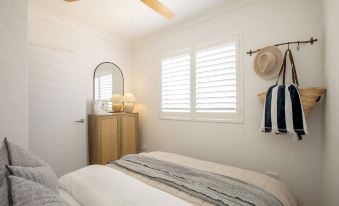 **For guests who may be looking for a stay with adult friends or family, additional sleeping is available in a lovely small second bedroom with Queen size bed & quality linens & which has direct access to a separate powder room (toilet & basin). Please note that the only showering available is in the ensuite which is accessed through the master bed.**