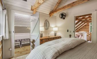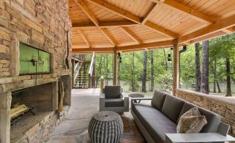 Escape to Camp McGu, a gorgeous log home with a magical lakefront setting in Monteagle's Clifftops, minutes from world-class hiking, the University of the South, South Cumberland State Park, Fall Creek Falls, and The Caverns. Situated on five private acres, the home has three fireplaces, an outdoor pizza oven, multiple outdoor seating areas and comes with three boats - two hybrid stand-up paddle boards and kayaks and one peddle boat.