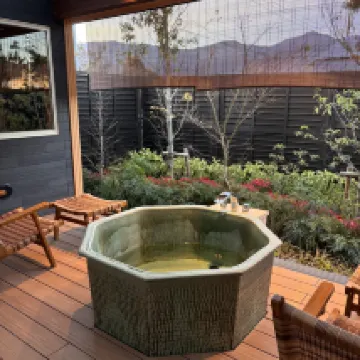 Khách sạn rất ấn tượng. Bạn phải tự nấu bữa sáng và bữa tối, nhưng nếu bạn không muốn bận tâm, thì lựa chọn không bao gồm bữa ăn sẽ tiết kiệm hơn. Được xây dựng vào năm 2024, khách sạn được trang bị rất đầy đủ tiện nghi, với đài quan sát núi Phú Sĩ riêng. Sảnh đợi là nơi lý tưởng để chờ đợi và thư giãn, có đồ uống và rượu miễn phí—tất cả đều khá độc đáo. Phòng của chúng tôi có hai giường đơn đặt cạnh nhau và chiếu tatami, có thể dễ dàng chứa bốn người lớn và một trẻ em, mặc dù Nhật Bản có yêu cầu nghiêm ngặt về số lượng người ở. Ngoài ra còn có suối nước nóng trong nhà (mặc dù tôi nghi ngờ nó được làm nóng hoặc chỉ đun sôi, tôi không chắc chắn, vì nó được làm nóng) và phòng xông hơi khô. TV cho phép bạn xem Netflix, Hulu, YouTube, v.v. mà bọn trẻ rất thích. Khách sạn hoàn hảo cho một kỳ nghỉ gia đình. Vào những ngày trời quang, bạn có thể nhìn thấy núi Phú Sĩ n*** từ phòng của mình, mặc dù cây cối sẽ che khuất nó. Tôi thực sự muốn giới thiệu khách sạn này! Đây là một khách sạn boutique chỉ có 16 phòng! N*** gần cửa khách sạn, rẽ trái là đến một siêu thị lớn với đầy đủ mọi thứ bạn cần, rất lý tưởng cho những ai biết nấu ăn. Ngoài ra còn có rất nhiều quán mì và các quán ăn khác, rất tiện lợi.
