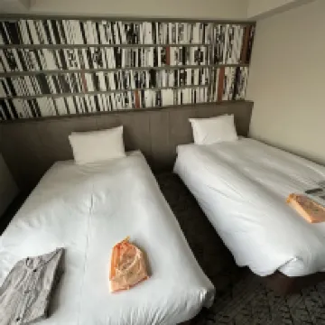 Khu vực lễ tân đẹp như thư viện. Chủ đề là thế giới trí thức với danh sách nhạc riêng. Kích thước phòng ổn với hai giường đơn. Giá như có thêm bàn chải đánh răng trong phòng, mặc dù muối tắm thì tốt. Mong phòng có mùi hương dễ chịu hơn. Nhìn chung, giường ngủ thoải mái.