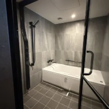 Phòng rất rộng. Thiết kế phòng tắm tuyệt vời và tiện lợi cho gia đình. Vị trí cách ga Hakata khoảng 7 phút đi bộ. Khá tốt.