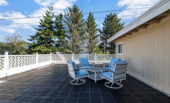 Upstairs, you'll discover three additional bedrooms and a cozy sitting area. A bunk bed in one of the rooms makes it a perfect hangout for kids, while another bedroom enjoys direct access to the upper deck—a fantastic spot to take in the coastal breeze and the sights and sounds of Garibaldi and Tillamook Bay.