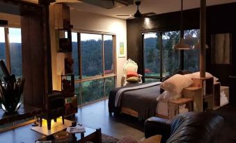 Soak in the giant bath while taking in the view. Curl up in front of the fire, make yourself some home grown popcorn and watch a movie , play board games, bird watching from out every window, this place was especially created with relaxation, revitalization and rejuvenation in mind, to help you escape from your busy lives.