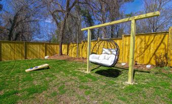 ✨Completely renovated & beautifully decorated open-concept home with luxury mattresses, 70in 4K TV, private patio, FENCED backyard w/ multiple swing chairs, comfortable outdoor seating, grill & fireplace!