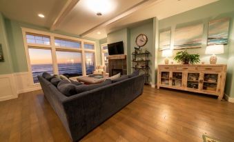 Spacious Living Room: Large windows frame stunning ocean views, with a comfortable couch for cozy evenings.