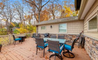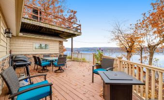 When you're not out on the town or the lake, enjoy some quiet time on the spacious furnished deck. Cook up something tasty inside the bright, full kitchen, and then bring your plates to the open-air dining table for an alfresco meal. You can also use the gas grill to sizzle up some barbecue. Fire up the gas firepit for ambiance in the evening.