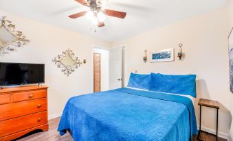 You'll love the home's cozy atmosphere with comfortable furnishings and turquoise accents. Both bedrooms and the living area are equipped with smart TVs so you can stream your favorite movie or show (with your own login credentials). A sofa bed is provided in the living area for the convenience of extra room.