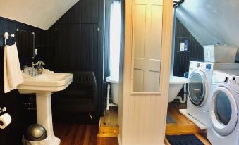 Furnished 2nd floor year round vacation cottage rental in downtown Grand Haven. Park your car in the driveway and walk to downtown, Chinook Pier, the Farmers Market, local restaurants, shops and live music. This 1 bedroom, 1 bathroom home was originally built in 1880. It retains a lot of it's old charm with a Clawfoot tub (with shower), pedestal bathroom sink, whitewashed wood ceiling and plaster walls. It has a full size washer/dryer, dishwasher, disposal, microwave, wifi. This is a great vacation spot in the heart of Grand Haven. I love nice linens and quality bath products and I provide the best to my guests as well. The queen bed is memory foam and the pillows are comfortable so you will be too. The couches are comfortable and there is a smart TV in the living room. Please note: This unit is on the second floor of a duplex. Because the home was built in 1880, the stairs were built on more steep incline than modern steps. It is not a good option for children or people with mobility issues. About pets:Pets allowed: dogs less than 50 lbs per pet (limit one pet total).About checkOut:Check out before 10:00 AM.About children:Adults only.About customRules:Only friendly, well trained dogs are allowed. They must not disturb other guests..About checkIn:Check in after 4:00 PM.About smoking:Smoking is not permitted.About minBookingAge:Minimum age to rent: 25.About events:No events allowed.