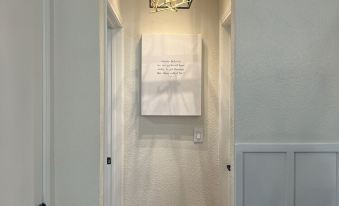 Off the communal living area is an additional full bath with a claw-foot tub, with antique Victorian fittings and a romantic crystal chandelier, with dimmer setting for all lights!