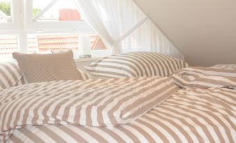 You live in an approximately 75 square meter, exclusively equipped, bright apartment right on Greetsieler Sielief in a grown residential area. The historic center can be reached on foot in about 7 minutes. In the 1st On the first floor there is a spacious living-dining area (WiFi available), the bathroom, an enclosed bedroom and the balcony on the south side. The second bedroom is in the attic (studio). A jetty directly at the shallow as an additional 'sun spot' and a small hut for storing z. B. of bicycles are waiting for your use. The apartment is characterized by high-quality equipment: underfloor heating, Miele fitted kitchen, walk-in shower, box spring beds in excess length, blankets in oversize (155 x 220), high quality bed and bath linen.About pets:No pets allowed.Haustiere nicht gestattet.About checkOut:Check out before 11:00 AM.About children:Children allowed: ages 0-17.Für Kinder geeignet.About checkIn:Check in after 2:00 PM.About smoking:Smoking is not permitted.Nichtraucherdomizil.About events:No events allowed.