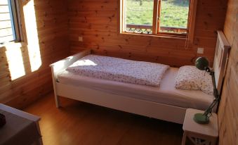 The house Ingolfsfjall has 70 square meters on a 6800 sqm large, natural land overlooking the Tuya Ingolfsfjall. It has a large living, dining area with an open kitchen and a cozy sofa corner. Two bedrooms downstairs, with a 160 cm wide double bed and a 120 cm wide bed and a loft with two single beds, are available. On the ground floor there is also a bathroom with shower, which has direct access to the lying on the terrace Hotpot. On the other side of the house is a small utility room with a washer and dryer. The house is designed for a maximum of 5 persons. A baby bed and a high chair for infants are available. The house may not be smoked and pets are not allowed.