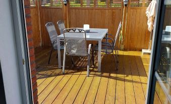 Wir sind mit vier Personen angereist. Darunter meine Oma mit stolzen 86 Jahren. Wir haben uns für die Unterkunft entschieden, da sie als barrierefrei eingestuft war. Meine Oma ist mit dem Gehstock mobil & so war die Unterkunft eine tolle Möglichkeit. Alle wichtigen Räume befanden sich im Erdgeschoss, sodass meine Oma problemlos sich dort aufhalten konnte. Es gab eine tolle Terrasse, die wir oft genutzt haben. Alle wichtigen Läden waren wenige Minuten mit dem Auto entfernt. Wir wurden herzlich im Empfang genommen, uns wurde die Unterkunft einmal komplett gezeigt & Flyer für z.B. Ausflugsziele & Restaurants haben wir auch erhalten. Wir konnten hier super entspannen & haben uns sehr wohl gefühlt. Wir würden definitiv wiederkommen.