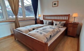 Hãy nghỉ ngơi thoải mái như đang ở nhà mình tại một trong 5 phòng được trang bị bếp với tủ lạnh/tủ đông cỡ lớn và lò nướng. Bạn luôn có thể giữ liên lạc bằng kết nối internet không dây miễn phí ngay tại phòng. Phòng được trang bị máy sấy; và có thể yêu cầu thêm bàn ủi/dụng cụ ủi quần áo.
