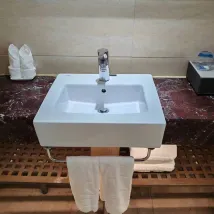 Khách sạn tốt, họ đã nâng cấp loại phòng. Quầy lễ tân rất nhiệt tình. Có buffet để ăn uống, giải quyết vấn đề ăn uống ở gần đó. Ngoài ra còn gần ga tàu điện ngầm. đồ ăn mang đi gần đó Nó tương đối yên tĩnh. Gia đình tôi nói nó không tệ. Phòng rất rộng rãi và không cần phải đợi nước nóng. Có rất nhiều nước.