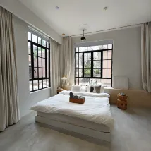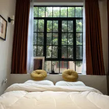 Ở đây giống như ở trong một không gian nghệ thuật đơn sắc tối giản với cửa sổ nhìn ra con hẻm đẹp. Đây là những phòng trên một quán cà phê nên không có lễ tân hay dịch vụ phòng/dọn dẹp phù hợp. Nhân viên rất hữu ích nhưng chỉ có một người phục vụ tại một thời điểm. Một điều cần biết là không có thang máy.