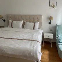 Nó rất yên tĩnh. Cách đại sứ quán 5 phút đi bộ. Xung quanh có quán cà phê và quán ăn vặt. Căn hộ có thang máy rất thuận tiện. Sếp còn nâng cấp phòng suite. Thái độ phục vụ rất tốt. Xin lỗi vì đã lấy mất thẻ thang máy .