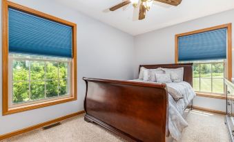 We stayed five nights and had a great time. House was clean and had everything we needed. We used all five beds and all of us thought our beds were comfy with no complaints. The Sunday Farmers Market was a nice extra right there in the territory. We used owner's club pool and galena city pool, both were very nice. Great little coffee shop in Elizabeth. Elizabeth has a nice splash for the kids and a bar with the best burgers. I think they called it Small Town. Galena is always fun with so much to do. It was really crowded on the weekend; Monday was much better. Tuesdays is the day when most things are closed downtown. Overall great trip. Only complaint were the knats when you were outdoors. We will be back.