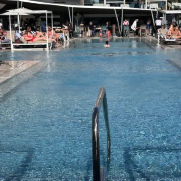 We were a little bit disappointed by the interior pool, wich was not heated and really small. Breakfast had many choices but 1.) the breakfast room was small and we were waiting in long queues just to be sitted in a table and 2.) the staff talked in a really bad tone to us about the take away policy, which was not needed. All hotel staff was really kind and helpful regardless some minor misunderstandings. The hotel has its own restaurant, a 24/7 convenient store and an ATM. Also, it has a bar restaurant with a big pool just across the street. It was a nice staying, not great but nice, clean and safe.
