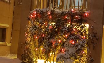 Warm Snowy Stream And Double Shadows In A Cozy Hut