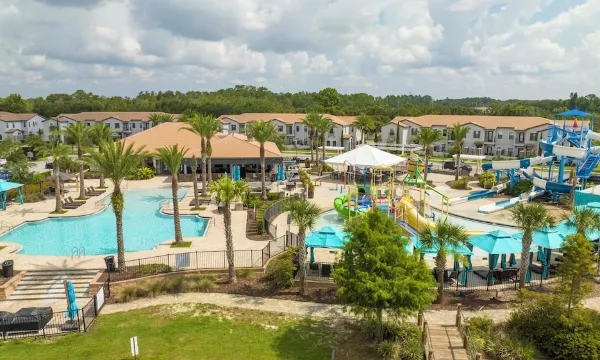 Very quiet community surrounded by beautiful lakes, gardens, walkways for the matinal runs with wonderful view. The resort club house has great amenities with Bar&Grill restaurant, water park ($20 fee), arcade, gym. volleyball court, football fields, event center and more.