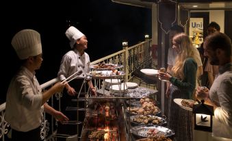 Thưởng thức món địa phương và quốc tế tại nhà hàng Unicharm Bar có quầy bar/khu lounge hoặc nghỉ lại trong phòng và thưởng thức những bữa ăn ngon với dịch vụ phòng (có giới hạn thời gian). Thư giãn sau một ngày dài bên cạnh ly đồ uống yêu thích tại quán bar trên bãi biển. Khách có thể dùng bữa sáng đầy đủ miễn phí hàng ngày từ 7:30 đến 9:00.