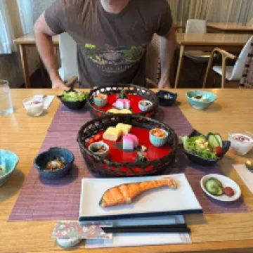 Such a great find! Calming ryokan in a peaceful part of the mountain. Staff were all super friendly and accommodating of us as tourists who didn’t speak Japanese. Every meal was delicious and the staff took time to tell us what each little dish was and even gave us some extra mini dishes to help us try different things. They were all delicious! The onsens were also very relaxing and had everything you could need. My boyfriend and I booked the private onsen our last night and looking out over the mountain at night when it was raining was a great experience. We got the Japanese style room and it was very spacious and the tatami floors were very comfortable. View over the mountains was also terrific. The ryokan shuttle took us to the nearest two train stations (Gora or Sounzan) in the morning when we requested and picked us up at the end of the day so it was very convenient getting to the ryokan even without a car. Highly recommend this stay!!