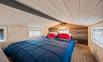 🛌 Sleeps 5 – 1 Queen Bed in loft 🛏️, 2 twin beds in loft 🛏️, 1 Double-sized futon bed in the 1st floor 🛋️, 1 Bath 🚿 (Shower, Sink, Toilet)