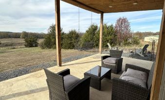 Quaint little place with a view of the countryside. Nice patio with a swing facing the open field area. Hottub was wonderful!