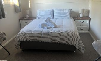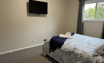 Relax with the whole family at this peaceful place to stay. Two bedrooms one with Queen size bed , one with 1 single and 1 queen size bed, queen size sofa bed also available all linen supplied, fully equipped kitchen with tea, coffee, milk, bread and a range of spreads supplied, outdoor entertainment area with fire pit all firewood supplied. Guest’s laundry available About pets:No pets allowed.About checkOut:Check out before 10:30 AM.About children:Children allowed: ages 0-17.About customRules:Additional charges for cot and linen $50 per stay.About checkIn:Check in after 3:00 PM.About smoking:Smoking is not permitted.About events:No events allowed.