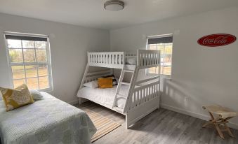 Discover tranquility in our 2-bedroom, 1-bathroom retreat, thoughtfully designed for your comfort and joy. Enjoy a fully equipped kitchen, ideal for culinary adventures. Rest in bedrooms featuring a queen, twin, and bunk bed – perfect for families. Gather in the cozy living and dining area, or unwind on the porch and terrace with outdoor furniture. Stay connected with high-speed internet and TV entertainment. Take advantage of our laundry room for added convenience. Bask in the outdoors at the gazebo or simply relax on the terrace. Your serene escape with modern amenities awaits! Our property fits up to 5 guests.