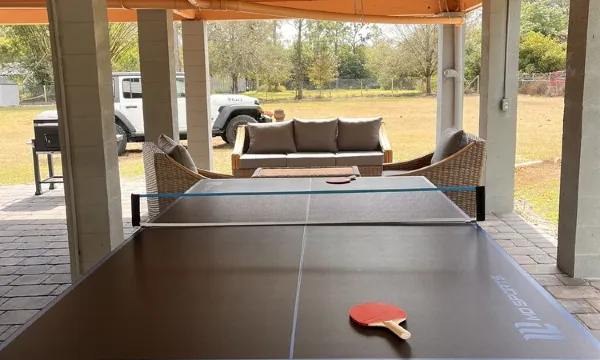 Our porch is a multifunctional space designed for your enjoyment. Here, you'll find a ping pong table that promises hours of friendly competition. Challenge your fellow travelers to a game and let the laughter fill the air. Nearby, a hammock sways gently, offering a tranquil spot for an afternoon nap or stargazing at night.