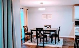 We really enjoyed our stay! It was very convenient to our wedding venue in Manning. Owner was accommodating & easy to work with and check in was easy. Rooms were very comfortable - beds were comfortable and had great linens!! There are 2 full bathrooms (not 3) and a powder room on bottom floorHoti tub was perfect… hot when we arrived and ready to use!There is no crib - only a pack-n-play & a high chair - which was great!Kitchen had everything we needed. PLENTY of nice big towels and soap, and basics like paper towels and TP. The only negative note - floors & stairs were dirty especially under beds and couch - where of course the toddler toys ended up! We enjoyed our stay and felt it was a great value for the price and would definitely book again!