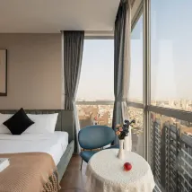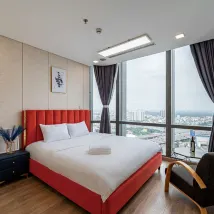 Căn hộ được trang bị đầy đủ tiện nghi, thiết kế hiện đại và sạch sẽ. Ban công hướng phố rất đẹp. Nhân viên thân thiện. Vị trí cực kỳ thuận tiện.