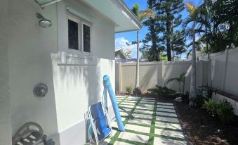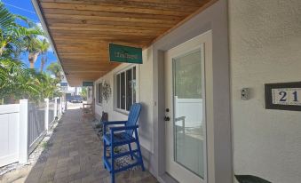 Relaxing small resort within walking distance of a wonderful white sand gulf beach. Palm shaded garden and pool; private patio for each unit, as well as folding beach chairs, an umbrella and wagon. Great location: short drive to restaurants and shops and free trolley nearby.