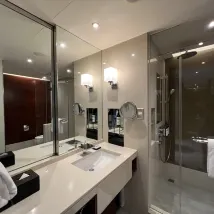 Tiện nghi trong phòng rất tốt, phòng tắm rộng, phòng tắm rộng rãi và đầu vòi sen lớn. Hai giường đôi nhỏ hơn một chút nhưng đáng để chia sẻ. Cửa sổ lồi được thiết kế như một chiếc đệm để ngồi ngắm cảnh về đêm từ một góc có thể nhìn thấy được biển một chút.