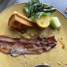 Thứ ba, bữa sáng thực sự chỉ có thế này thôi, salad, trứng, thịt xông khói và cà phê. Mọi người đều cảm thấy khó tin và quyết định không ăn sáng vào ngày hôm sau.