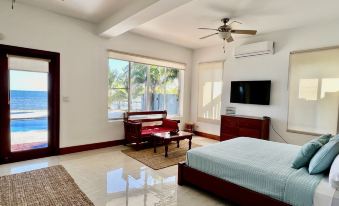 NEW LISTING. Villa Shore is a spacious five bedroom private beachfront Villa located on the Caribbean Sea. Large pool on the beach with swim up palapa bar and outdoor shower. Enjoy the sunrise overlooking our breezy palm tree lined beach.