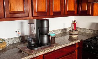 Well appointed kitchen with bar. Bow Flex training equipment. Full sized washer and dryer. UV filtered 5 gal water dispenser available - water can be purchased at local stores. We provide 1 to get you started. Note: We drink the tap water.
