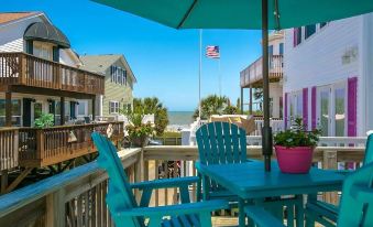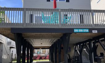 The main level has a large, fully-furnished kitchen with stainless steel appliances, dishwasher, stove, microwave, and refrigerator with ice maker, dishes, pots/pans, silverware and supplies. Washer and Dryer is located directly off of the kitchen. The living room seating has a large sectional for ample sitting, it also features a 50' inch HD flat screen TV. The master bedroom with a king-size bed is located off the kitchen and shares a full-size bath and has a flat HD screen TV. One of the large decks is equipped with lounging chairs, a high-top table, and chairs for enjoying the view, relaxing and watching the ocean. The living room and dining room have access to the other large deck area. This deck is supplied with table and chairs for dining, and a high dining table with two chairs for morning coffee while watching the sun rise and ocean break.