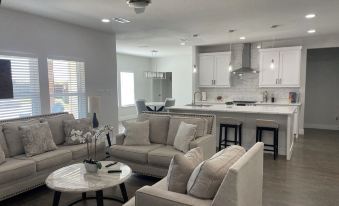 Step inside to find a sun-drenched living space adorned with tasteful decor and luxurious furnishings. The open layout is perfect for socializing, while a large smart TV and refined design elements create a welcoming ambiance. For food lovers, the fully equipped kitchen features sleek stainless-steel appliances, providing everything needed to prepare quick snacks or family feasts. Whether streaming your favorite shows, catching up on work in the office, or relaxing in the pool’s spa as the sunset paints the sky in brilliant hues, every moment promises comfort.