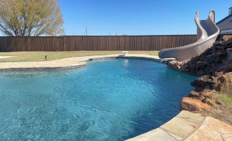 Immerse yourself in pure comfort within this beautifully designed, single-story home. Boasting a vast fenced backyard that feels like your own private sanctuary, you can spend hours splashing in the sparkling pool with its playful waterfall and exciting slide, or challenge friends and family to a spirited Ping-Pong match. After a day full of activities, unwind on the patio with a sizzling barbecue under the warm Texas sun.