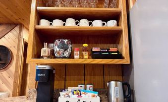 • Free coffee pods, and plenty of wine glasses and coffee mugs