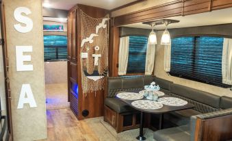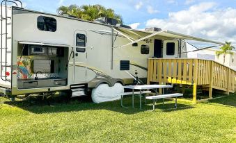 🏡This beautiful, 38-foot, clean and cozy, beach themed RV is fully stocked with everything your family needs and ready for your stay! On a private lot! 🌅Beaches 2-10 minutes away! 🌃20 minutes and you're in Downtown Fort Myers for a night out. Shop 'til you drop at the premium malls and shopping centers nearby.🛌Unwind in the private front-living master bedroom with a queen bed. Plus, an additional bedroom with two twin bunkbeds and a pull-out couch. This RV is equipped with a total of 1 queen bed, 2 twin bunkbeds, and 2 pull-out couches. 🍔Enjoy your stay with a full kitchen, plus an outside kitchen grilling area to enjoy dinner at dusk or breakfast at dawn! Radio system throughout the RV to play your jams. ❄️Stay cool with powerful central AC. Access free parking on your private lot around the RV. Free electricity, water, and unlimited Wi-Fi.⛱️Complimentary beach essentials will also be stocked in the RV and ready for the beach.About pets:Pets allowed: dogs less than 50 lbs per pet (limit 2 pets total).Only well trained dogs allowed- clean up after.About checkOut:Check out before 11:00 AM.About children:Children allowed: ages 0-17.About customRules:If any objects are damaged during your stay, you will be compensated for the damage..If you have a dog please clean up as much as you can..About checkIn:Check in after 2:00 PM.About smoking:Smoking is not permitted.About minBookingAge:Minimum age to rent: 18.About events:No events allowed.
