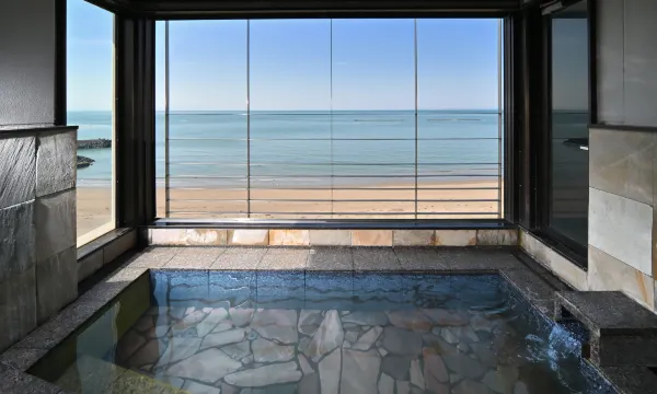 We are a toji (hot spring therapy) inn, that offers local gourmet food and a warming hot spring which overlooks and offers a view of Meotoiwa Rocks.