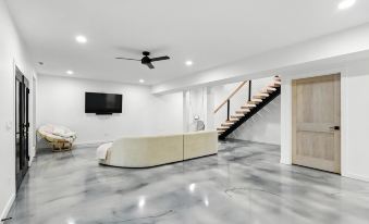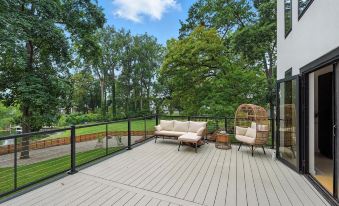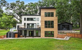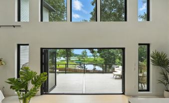 Escape to Happie Space on Snow Lake, a modern smart home with panoramic lake and park views. Enjoy a chef’s kitchen with built-in latte machine, open-concept living, and a 12' full panel accordion patio door that brings the outdoors in. Relax on the deck, patio, or in hammocks by the garden. Private beachfront, paddle boards, dock access, firepit, and outdoor shower. Plus a yoga studio to unwind. Cozy meets lake life—perfect for rest, recharge, and fun. Happie Space on Snow Lake, a newly built lakefront smart home overlooking Snow Lake, Lake James, and Pokagon State Park. Designed for relaxation and connection, this bright and modern retreat features luxury amenities, a private beach, a full deck and patio setup, and a serene yoga studio — all just steps from the water. Happie Space on Snow Lake, your lakeside sanctuary designed for peaceful mornings, golden hour evenings, and everything in between. This modern, new-construction home sits directly on Snow Lake, part of the Lake James chain, and offers panoramic views of both lakes and Pokagon State Park. Open-concept living area with a 12-foot accordion-style glass door that opens fully to let in the lake breeze, complete with a custom screen. Smart home features throughout: automated lights, blinds, security cameras, and more. Fully stocked chef’s kitchen with stainless appliances and a plumbed automatic coffee/latte machine — just add beans and press a button for barista-quality drinks. Two cozy bedrooms plus a scenic loft bedroom with breathtaking views, 1.5 modern bathrooms thoughtfully designed for comfort and convenient laundry area to make longer stays feel like home. Expansive upper deck with lounge seating, outdoor dining area, and built-in speakers for easy entertaining. Covered lower patio with more seating and a stereo system — perfect in any weather. Fully fenced backyard with lush gardens, hammocks, and peastone lounging areas. Private beachfront with peastone, steps into the water, a firepit, and lounge chairs for stargazing and sunbathing.. Outdoor shower to rinse off after a swim or day on the lake. Shared dock for parking one watercraft, with calm cove waters ideal for private swimming. Two paddle boards available for guests to enjoy peaceful morning paddles or lake adventures. An attached private studio equipped with yoga mats, blocks, balls, and a sound system — the perfect spot to stretch, meditate, or simply unwind when not in use by the owners for their business. Whether you’re enjoying a morning coffee on the deck, reading in a hammock, soaking in the view from the loft, or spending golden hour by the firepit, Happie Space on Snow Lake offers the perfect blend of comfort, style, and nature.About pets:No pets allowed.About checkOut:Check out before 10:00 AM.About children:Adults only.About checkIn:Check in after 4:00 PM.About smoking:Smoking is not permitted.About minBookingAge:Minimum age to rent: 21.About events:No events allowed.