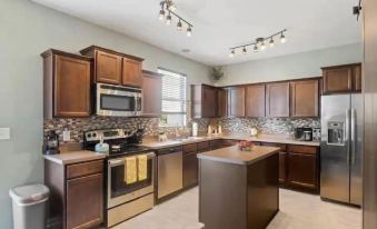 * Fully equipped kitchen: Stainless steel appliances, cookware, and dining essentials